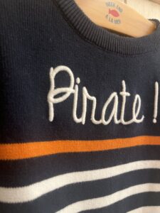 IMG_6240 Navigation de l’articleArticle précédent : Pull Marin Pirate • en Maille 100% coton • Du 6 mois au 8 ans