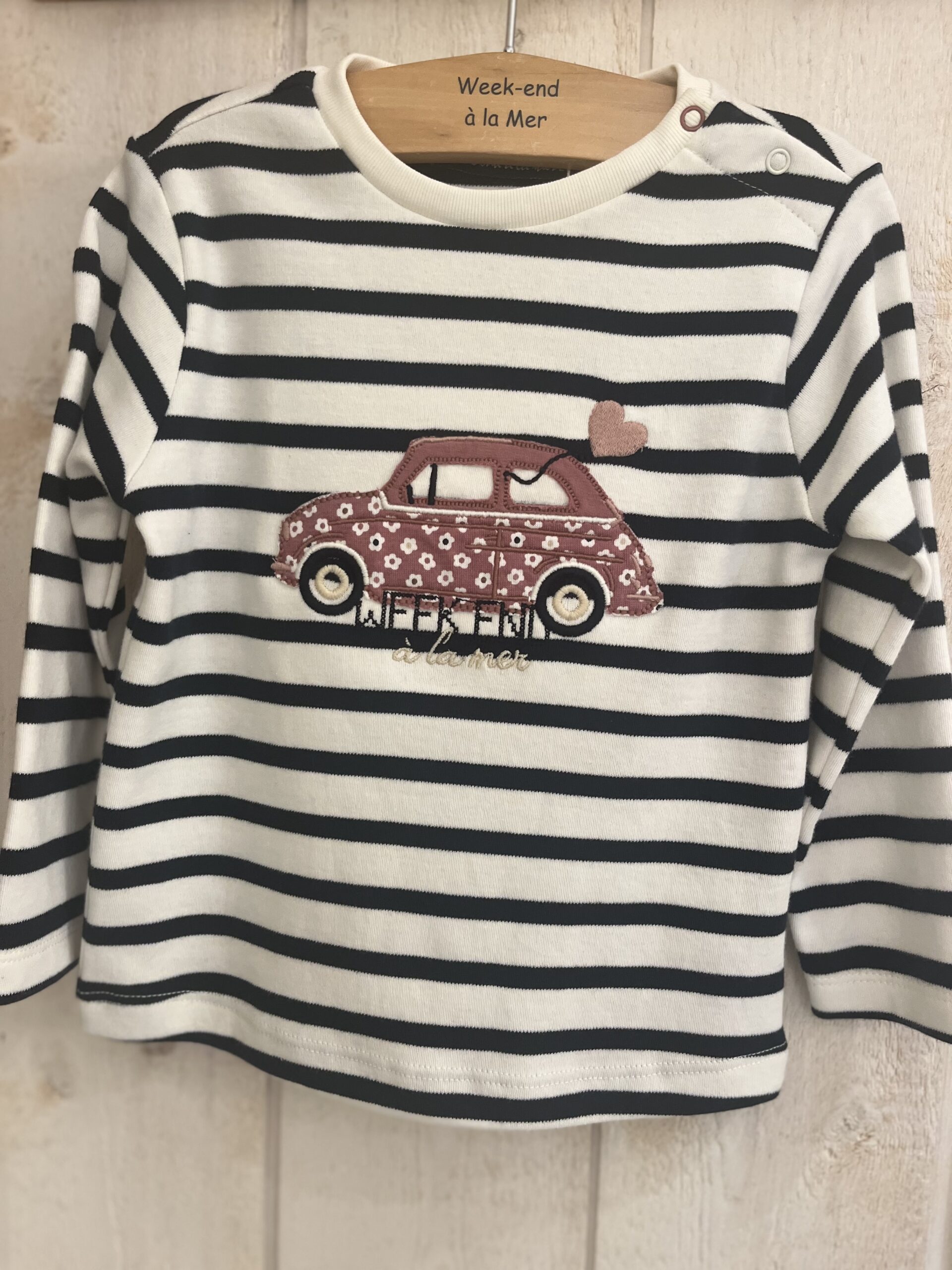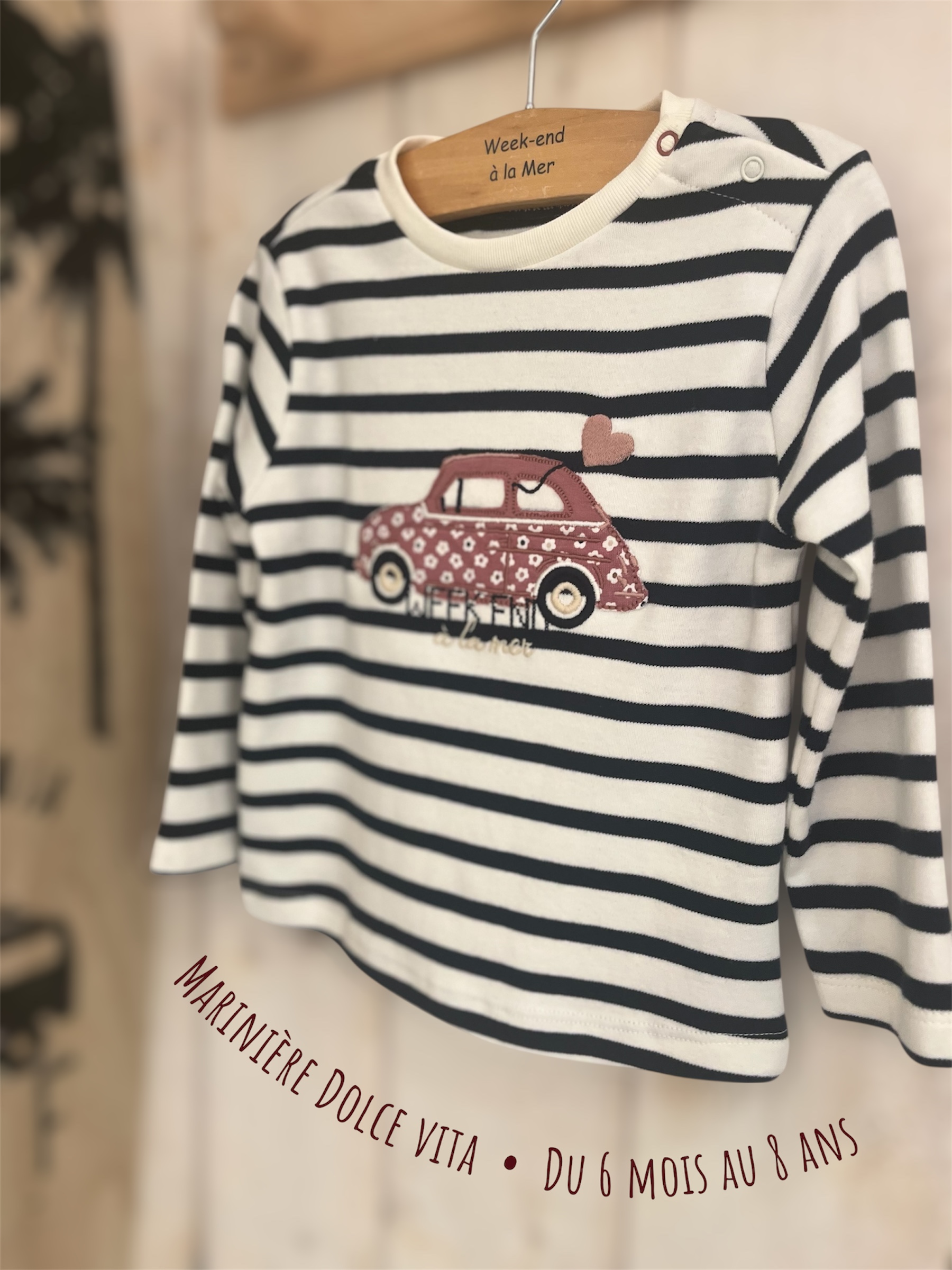 Craquez pour cette Magnifique petite marinière, brodée d’une jolie p’tite voiturette vintage