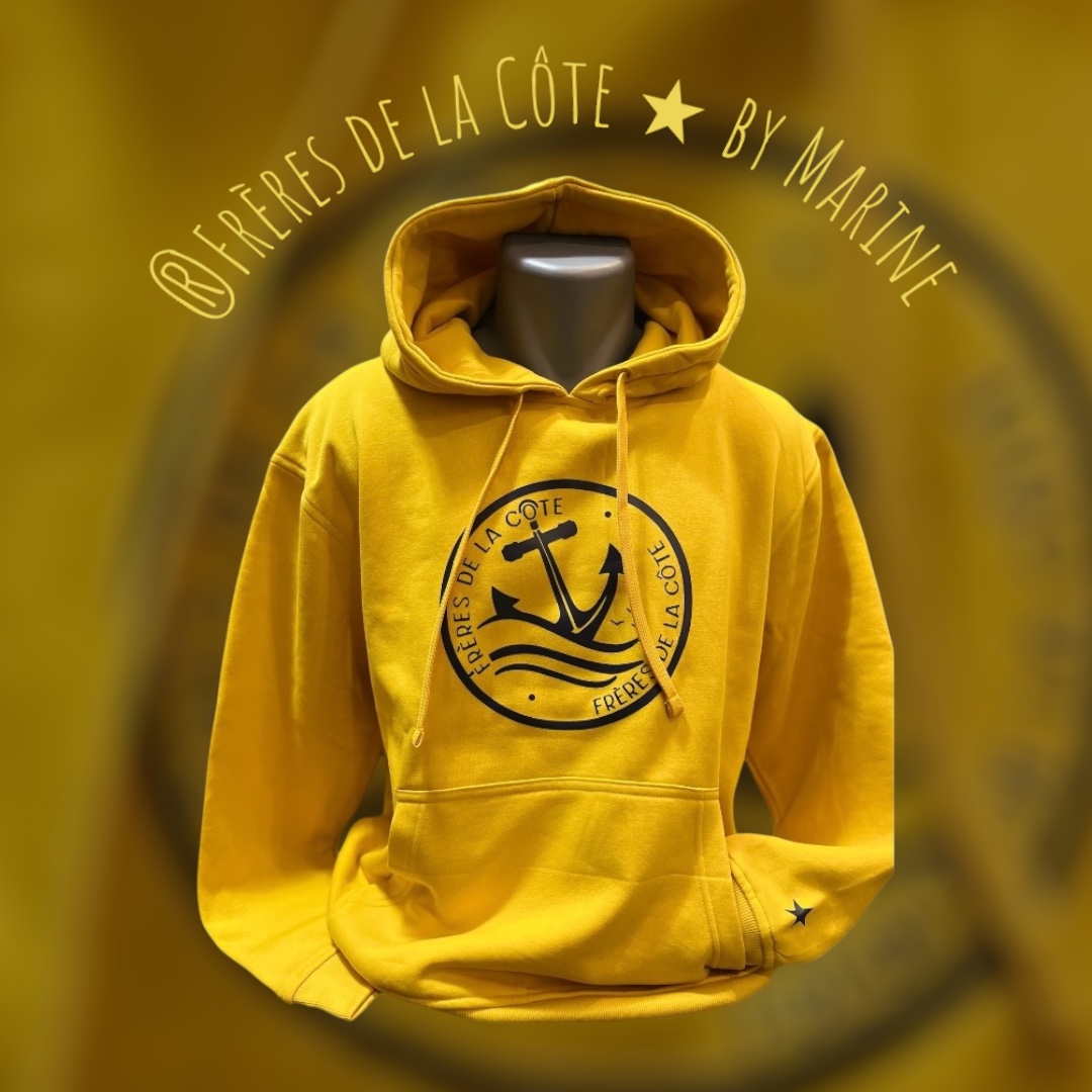 Sweat Capuche ®Frères de la Côte ⭑BY MARINE couleur JAUNE  Logo MARINE